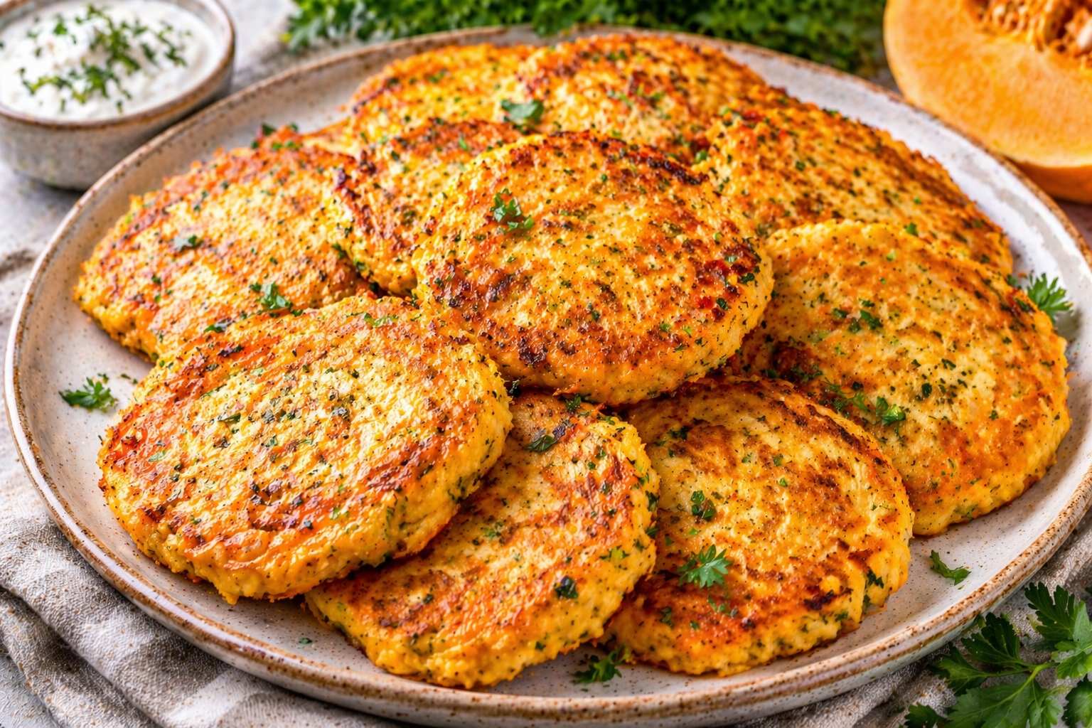 Нежные оладьи из тертой тыквы с плавленым сыром и свежей зеленью. Готовятся быстро и подходят для семейного завтрака.